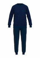 Comfort en stijl komen samen in deze luxe herenpyjama van Bugatti. De pyjama is uitgevoerd met een lange mouw en een comfortabele ronde hals, ideaal voor de koelere nachten. De manchetten aan de mouwen en broekspijpen zorgen voor een perfecte pasvorm en extra draagcomfort. Gemaakt van zachte, ademende materialen voor een aangename nachtrust. Deze pyjama combineert een tijdloos design met de kwaliteit die je van Bugatti mag verwachten. Kleur: 665 donkerblauw Kwaliteit: 60% katoen 40% polyester