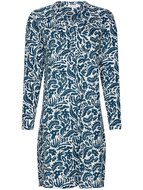 Comfort en stijl komen samen in dit vrouwelijke nachthemd, vervaardigd van 100% ademend katoen. Het nachthemd is uitgevoerd met een zachte halslijn die elegant overgaat in een gedeeltelijke knoopsluiting – praktisch én charmant. De witte ondergrond wordt verfraaid met een delicate blauwe bloemenprint, voor een frisse en tijdloze uitstraling. Perfect voor een comfortabele nachtrust. Kleur: 520 dark blue Kwaliteit: 100% katoen Lengte: ca. 95 cm