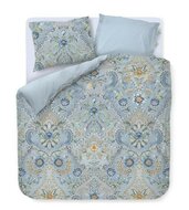 Pip Studio Saluti Grandi Light Blue dekbedovertrek is een symmetrisch opgebouwd bloemenpatroon, geïnspireerd op de prachtige behangmotieven uit Italië. De achterkant heeft een patroon van streepjes. Het overtrek en de kussenslopen hebben een doorgestikte oxford rand aan de zijkanten, dit geeft een luxe uitstraling. De kussenslopen hebben een striksluiting en net als het overtrek twee verschillende kanten en kun je tweezijdig gebruiken. Zo creëer je een speels mix & match effect. Het dekbedovertrek is niet alleen een blikvanger in je slaapkamer, door het gebruik van 100% katoenperkal is het overtrek heerlijk zacht en door de weefdichtheid van 200TC blijft de stof lang mooi. Het overtrek maak je eenvoudig op dankzij de extra lange instopstrook over de gehele breedte. Je kan het overtrek wassen tot 60 graden, strijken en is geschikt voor de wasdroger. Hoewel de hoogwaardige kwaliteit ervoor zorgt, dat strijken eigenlijk niet nodig is. Kleur: lichtblauw Kwaliteit: 100% katoen