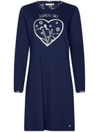 Comfort en stijl komen samen in deze prachtige Rebelle dames nachthemd. Het donkerblauwe nachthemd is voorzien van een speelse Aspen Ski-opdruk, die zorgt voor een winterse en sportieve uitstraling. Gemaakt van zachte materialen voor ultiem draagcomfort tijdens koude nachten. Perfect voor een ontspannen avond op de bank of een knusse winterslaap. Kleur: 520 - Dark Blue Kwaliteit: 100% katoen Lengte: ca. 95 cm