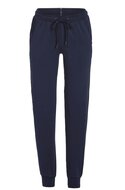 Deze loungebroek is de perfecte metgezel voor gezellige dagen en ontspannen uurtjes – of het nu thuis is, tijdens de yoga of onderweg naar een café. De relaxte pasvorm en het zachte materiaal zorgen voor maximaal comfort, terwijl doordachte details zoals praktische steekzakken en elastische boorden bij de beenopeningen een moderne, sportieve look creëren. De gebreide boorden zorgen niet alleen voor een perfecte pasvorm, maar geven de broek ook een prachtig silhouet. De elastische tailleband maakt individuele breedteaanpassing mogelijk en maakt het comfortabele design compleet. Kleur: 282 - Blue Navy Kwaliteit: 95% katoen, 5% elastan