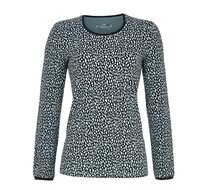 Dit dames T-shirt is de perfecte combinatie van comfort en een modieus design. Het heeft een klassieke ronde hals en lange mouwen voor een comfortabele pasvorm. De abstracte print geeft het T-shirt een frisse en moderne touch en is daarmee een echte blikvanger. Gemaakt van een hoogwaardige katoen-elastaanmix, voelt het T-shirt zacht aan en biedt het optimale bewegingsvrijheid. De elastische eigenschappen van het materiaal zorgen ervoor dat het T-shirt comfortabel om het lichaam zit en tegelijkertijd zijn vorm behoudt. Kleur: 571 - island green Kwaliteit: 95% katoen, 5% elastan Lengte Shirt: ca. 65 cm.