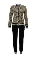 Deze loungewearset voor dames is de ideale keuze voor gezellige uurtjes thuis en biedt zowel stijl als comfort. Het ritsjack met trendy dierenprint is een echte blikvanger en wordt perfect afgerond door de gestreepte gebreide boorden aan de kraag, mouwen en zoom. De klepzakken zijn een modieus detail. De lange broek heeft een comfortabele elastische tailleband voor een perfecte pasvorm, terwijl de beenuiteinden met gestreepte gebreide boorden extra comfort bieden. Steekzakken aan de zijkant maken de look compleet. Gemaakt van hoogwaardig corduroy, voelt deze loungewearset bijzonder zacht en comfortabel aan op de huid. Het elastaangehalte zorgt bovendien voor bewegingsvrijheid en een perfecte pasvorm. Ideaal voor ontspannen avonden op de bank of gezellige ochtenden. Kleur: 980 Multi Kwaliteit: Top: 95% polyester, 5% elastan Broek: 80% katoen, 20% polyester Lengte shirt: ca. 60 cm.