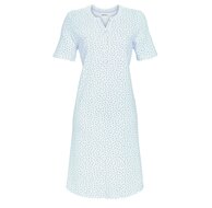 De bijzondere charme van dit nachthemd is het abstracte bloemenpatroon. Met modieuze halslijn en knoopsluiting. De zoom is licht afgerond. Het zuivere katoen in beproefde single jersey kwaliteit is zacht, ademend en ideaal, zelfs voor de gevoelige huid. Kleur: 545 Jade Kwaliteit: 100% Katoen Lengte: ca. 100 cm.