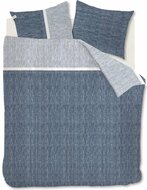 De print op Amsterdam Loft Bluegrey is een geweven stofstructuur met visgraatmotief. Bovenbaan lichter van kleur met mooie geprinte geweven band tussen de twee kleuren in. Het overtrek is onderaan diepe jeansblauw met lichtgrijze bovenzijde en lichte geprinte bies. Amsterdam Loft is gemaakt van 100% katoen. De inspiratie voor de overtrek komt uit de fashion. In de bovenhoek van het overtrek en kussen in canvasstijl een stoer label geprint. Dit overtrek past in een stoere moderne slaapkamer.