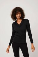 Dit thermo shirt voor dames van Ysabel Mora heeft kanten details langs de V-hals. Het is zacht en elastisch. Het shirt heeft lange mouwen en heeft een opgeruwde binnenkant, waardoor het heerlijk zacht voelt op de huid. Fijn om te dragen tijdens koude dagen. De maten vallen iets kleiner, vindt je het fijn dat het shirt iets minder aangesloten zit en wat langer valt, neem dan 1 maat groter. Kleur: zwart Kwaliteit: 92% polyester, 8% elastan